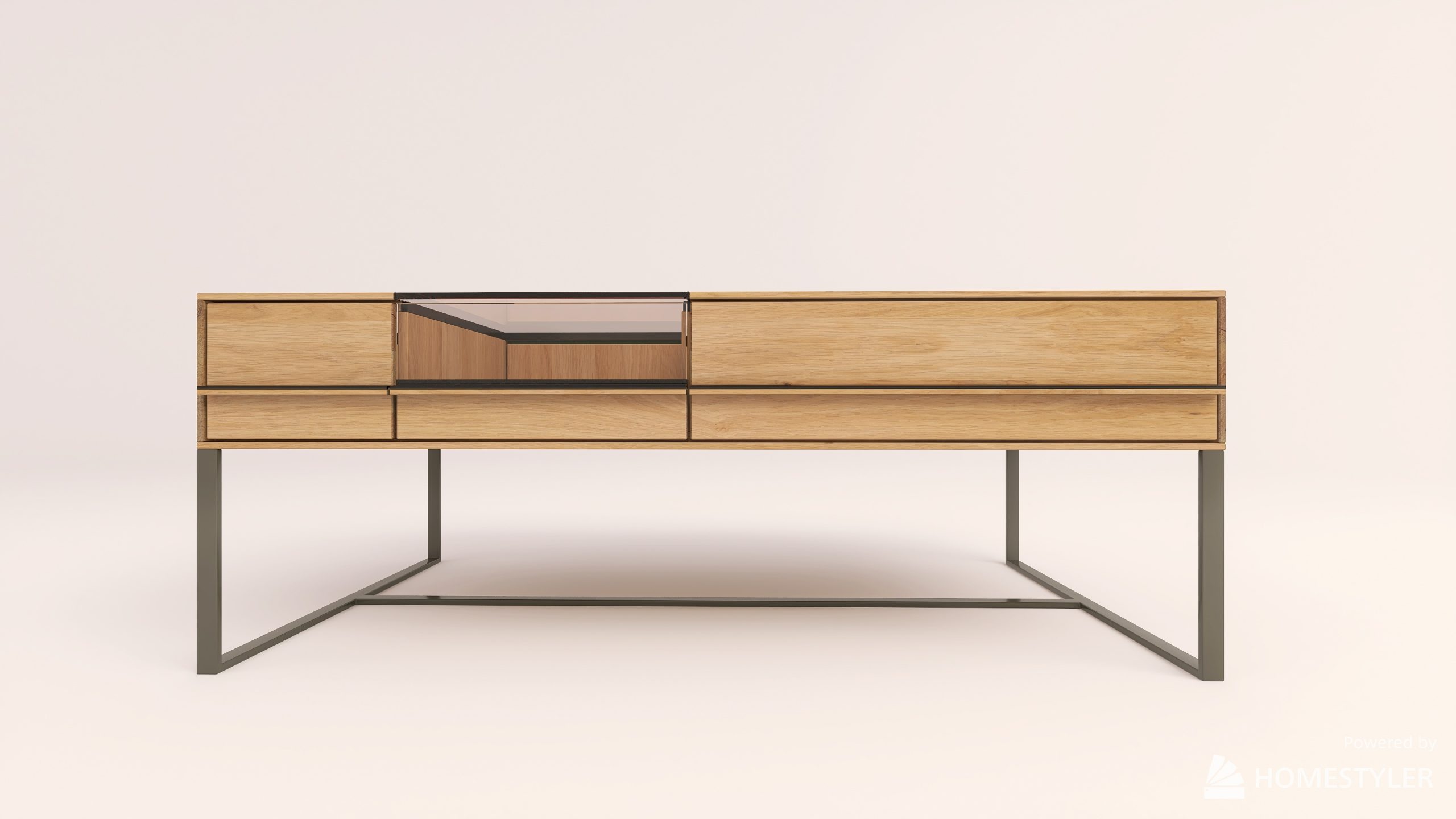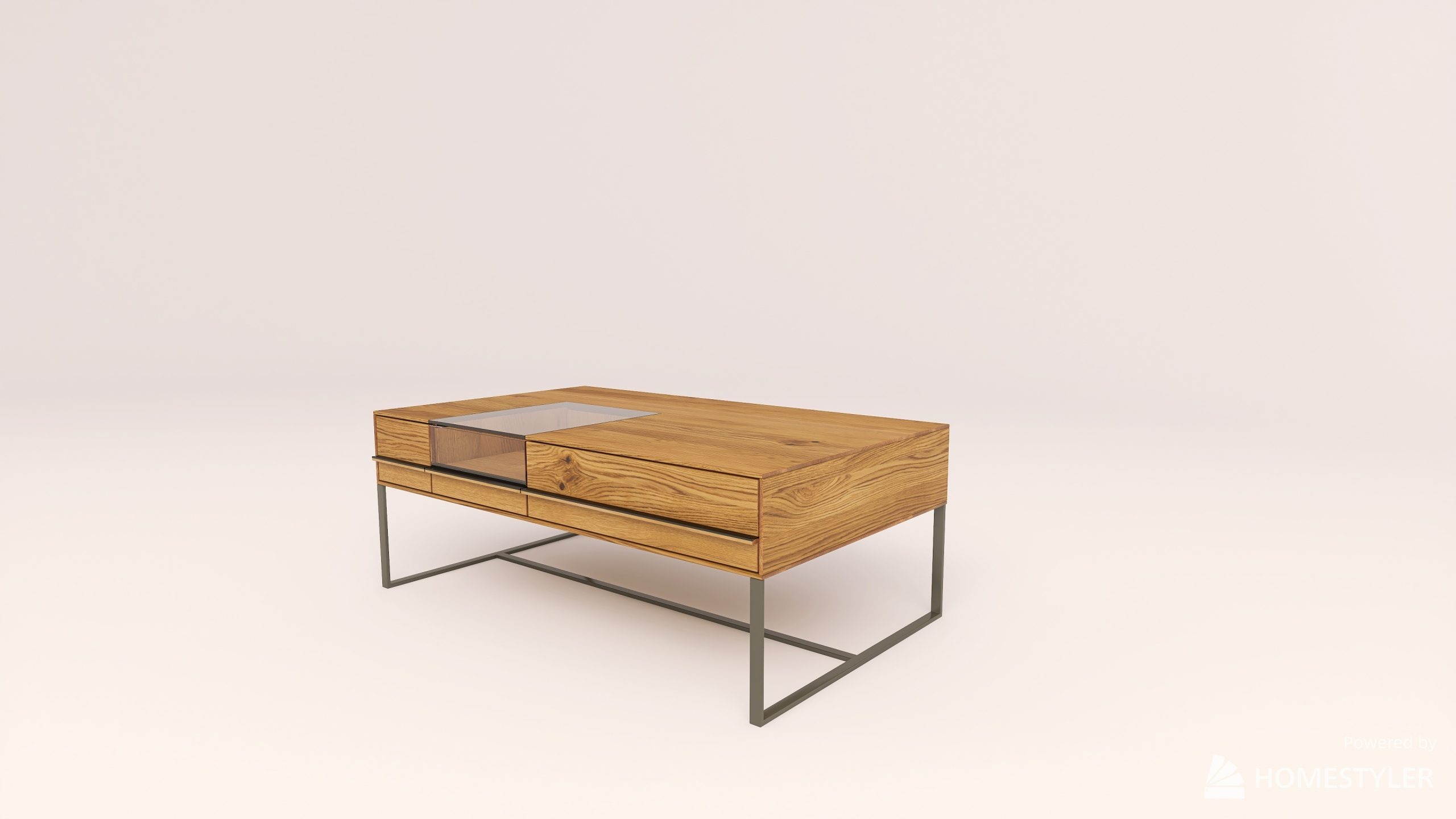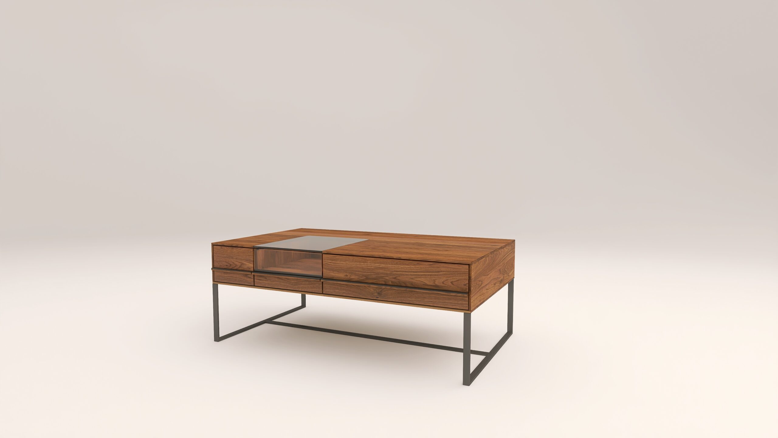 Dohányzóasztal fém lábbal. Egy üveges és egy sima fiókkal.
