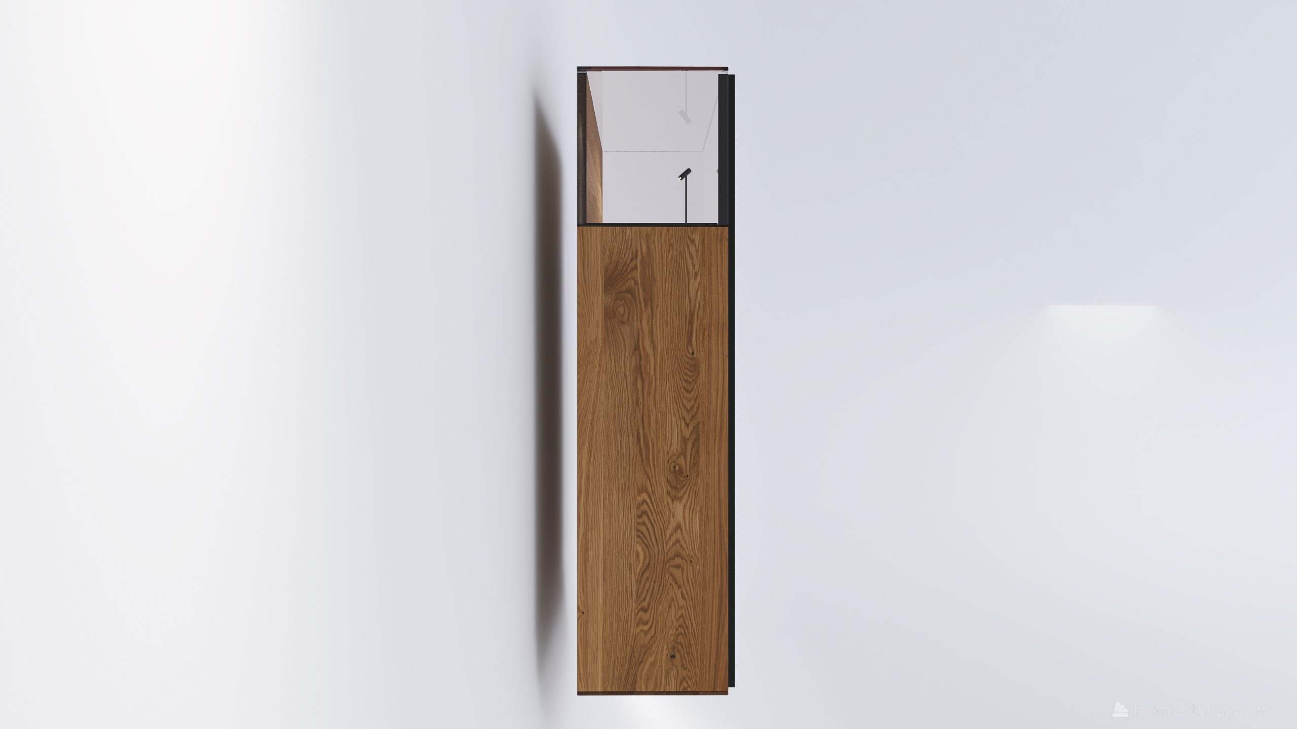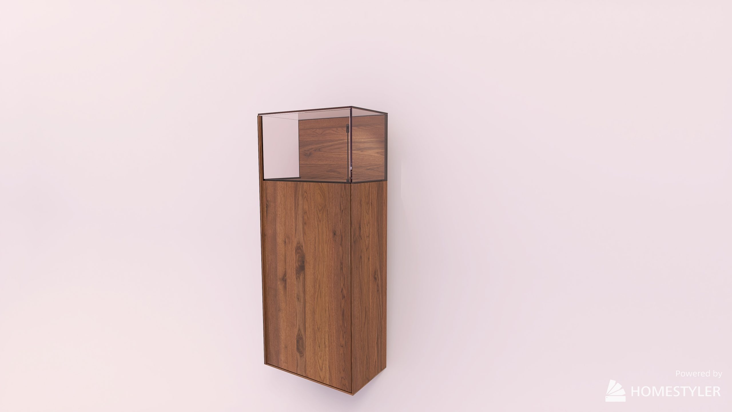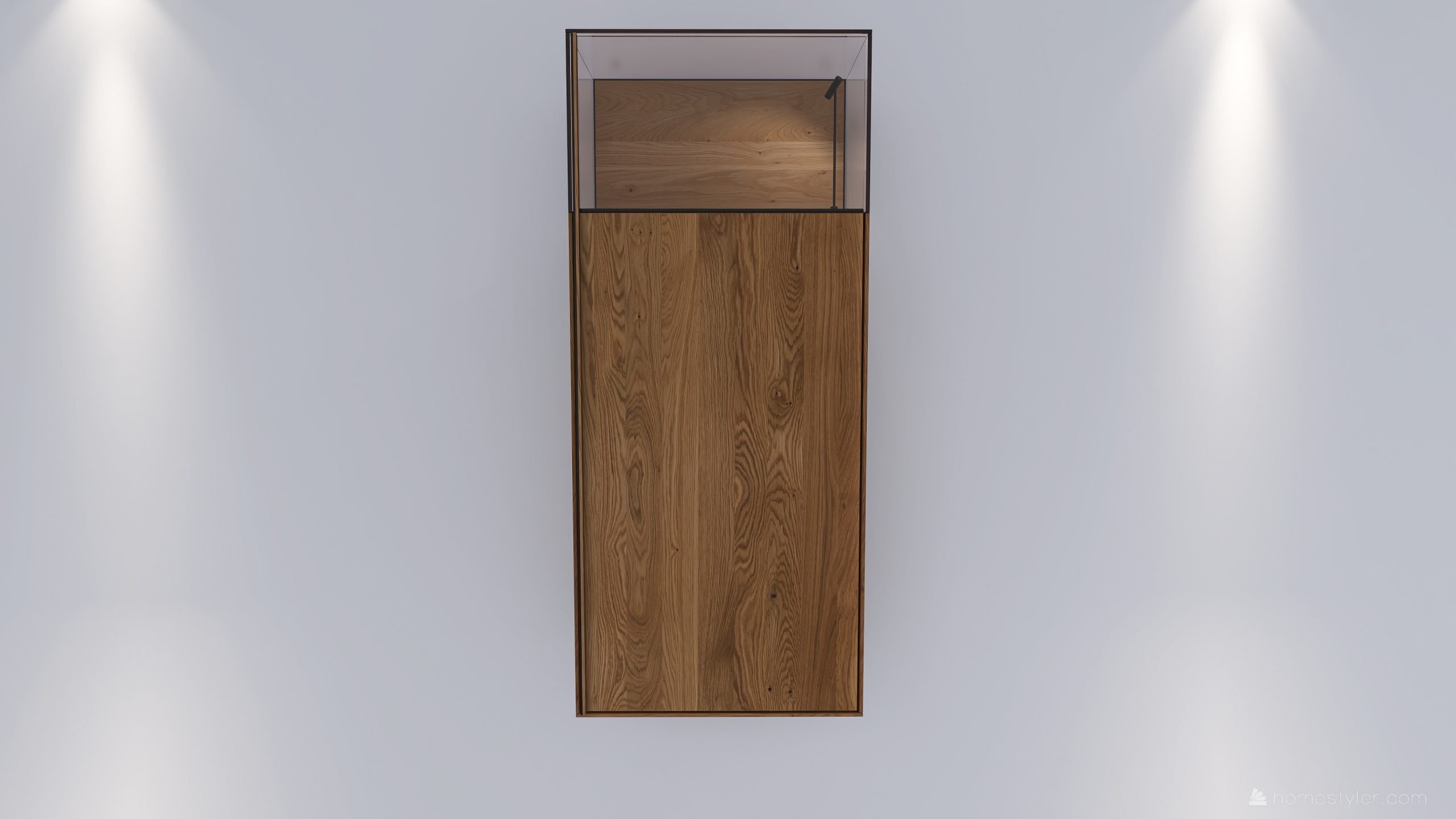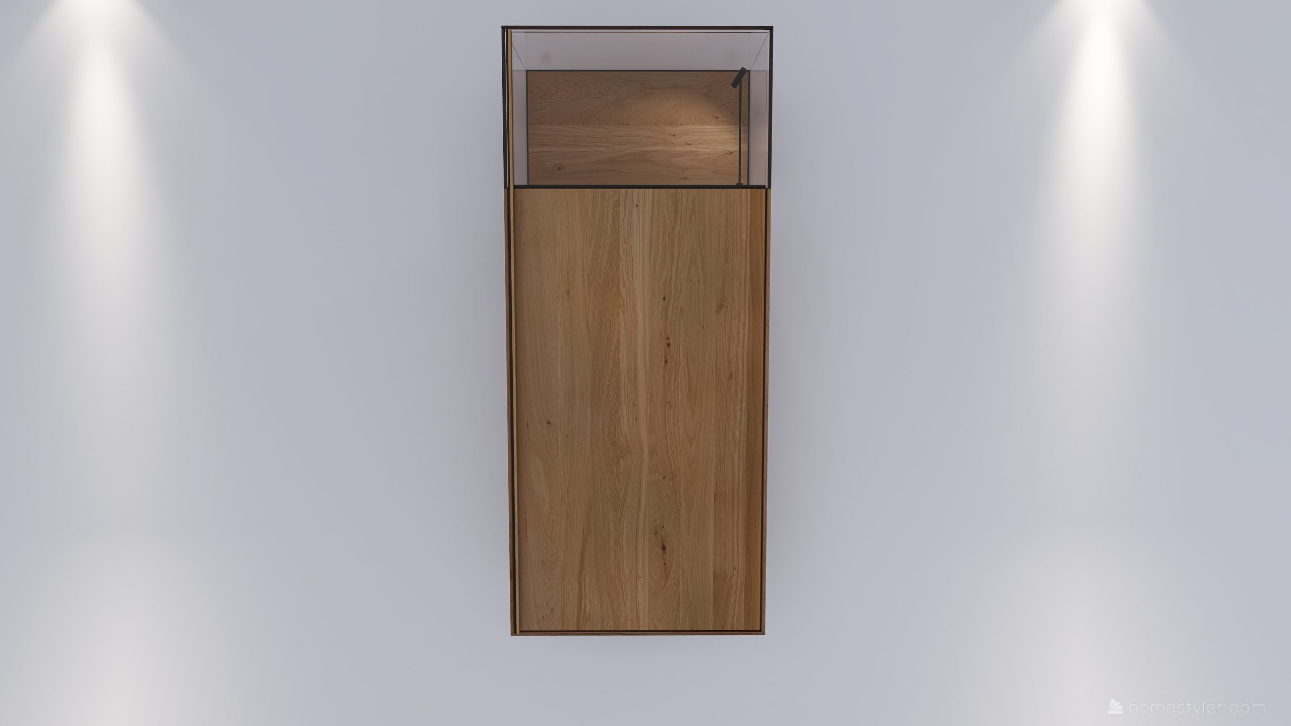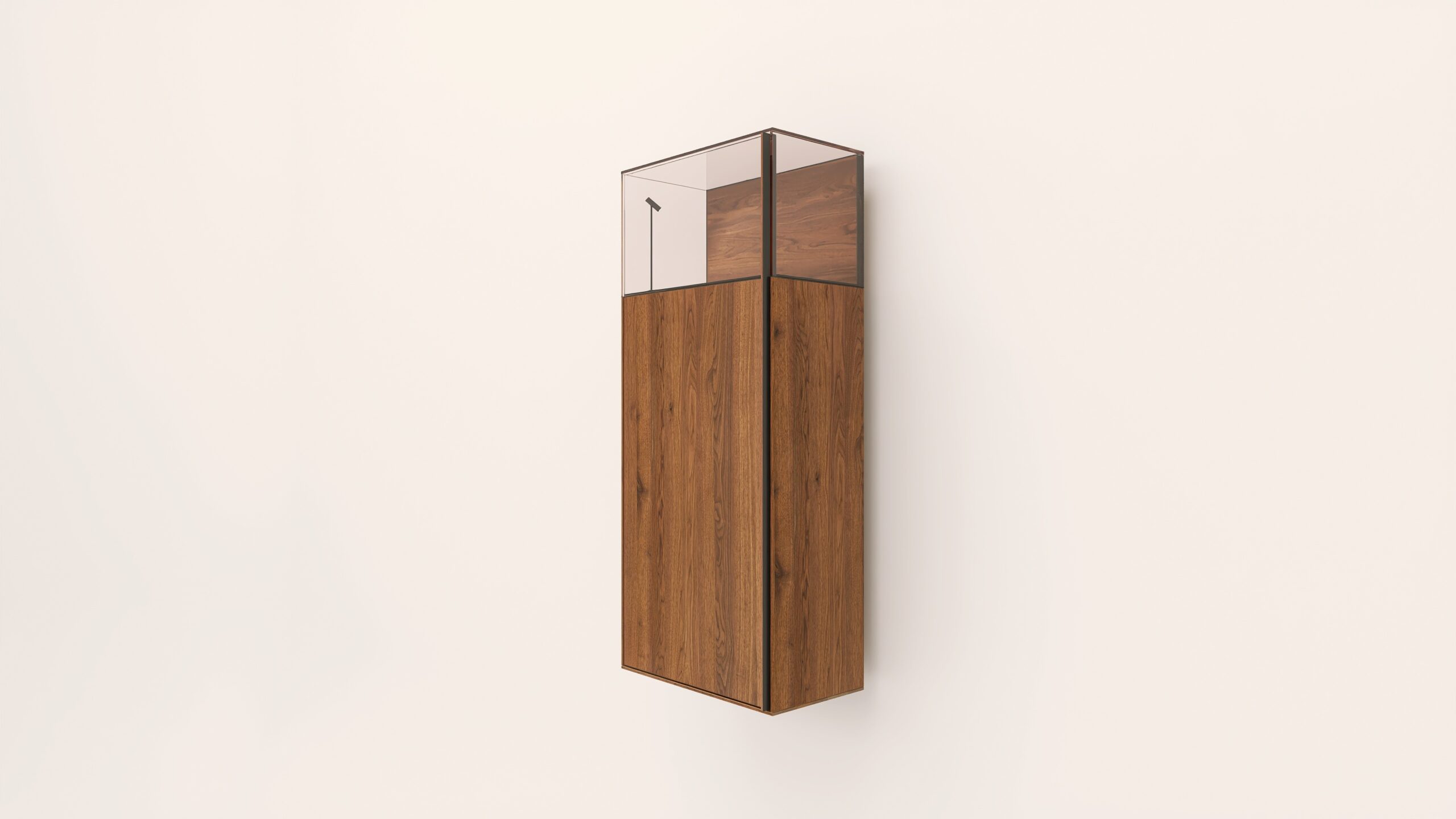 Tömörfa faliszekrény, egy nyíló üvegajtóval, mögötte két polccal. A hátfal anyaga az üveges rész mögött ( pala, kerámia) valamint a világítás opcióként választható. Jobbos és balos kivitelben.