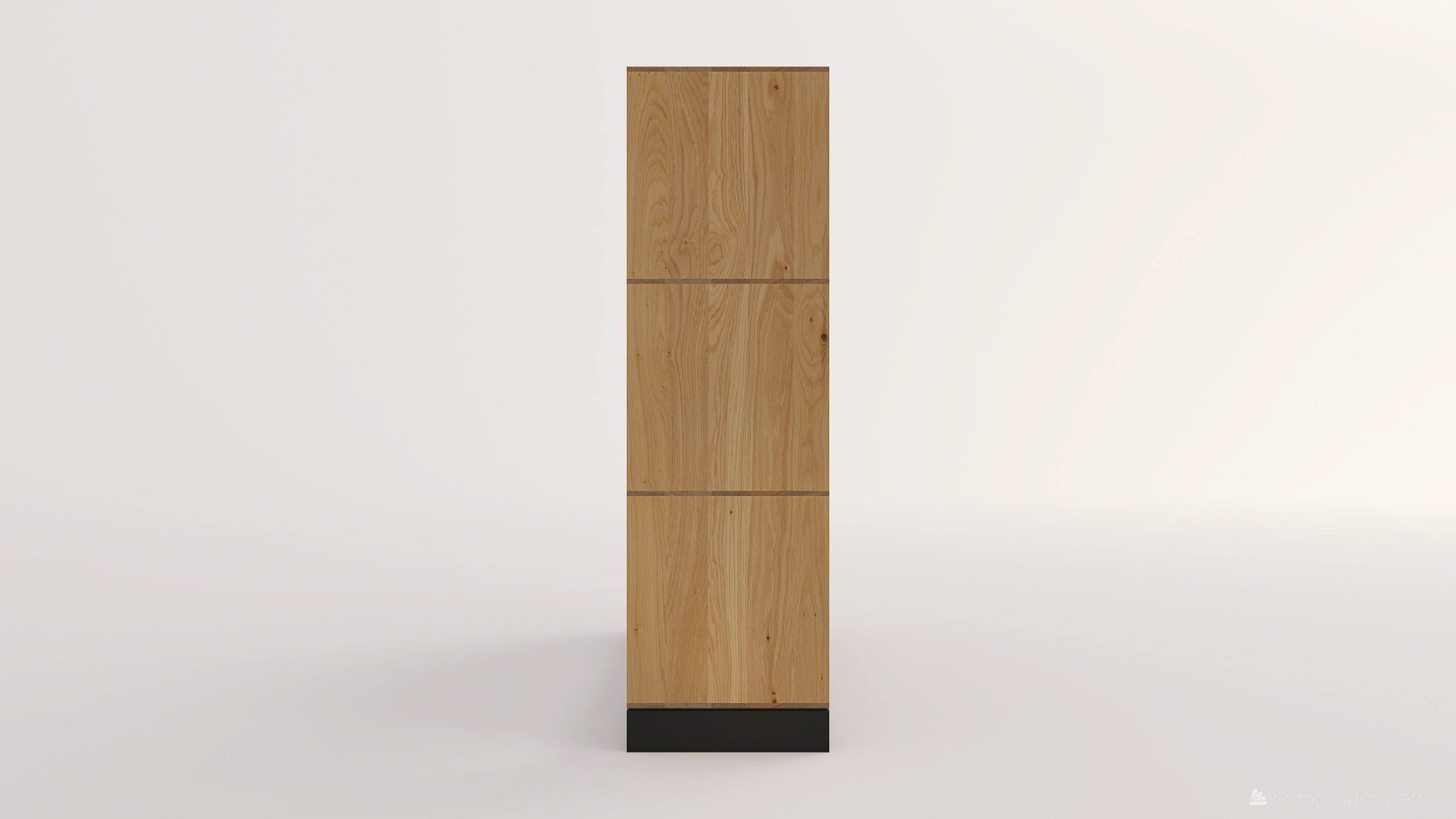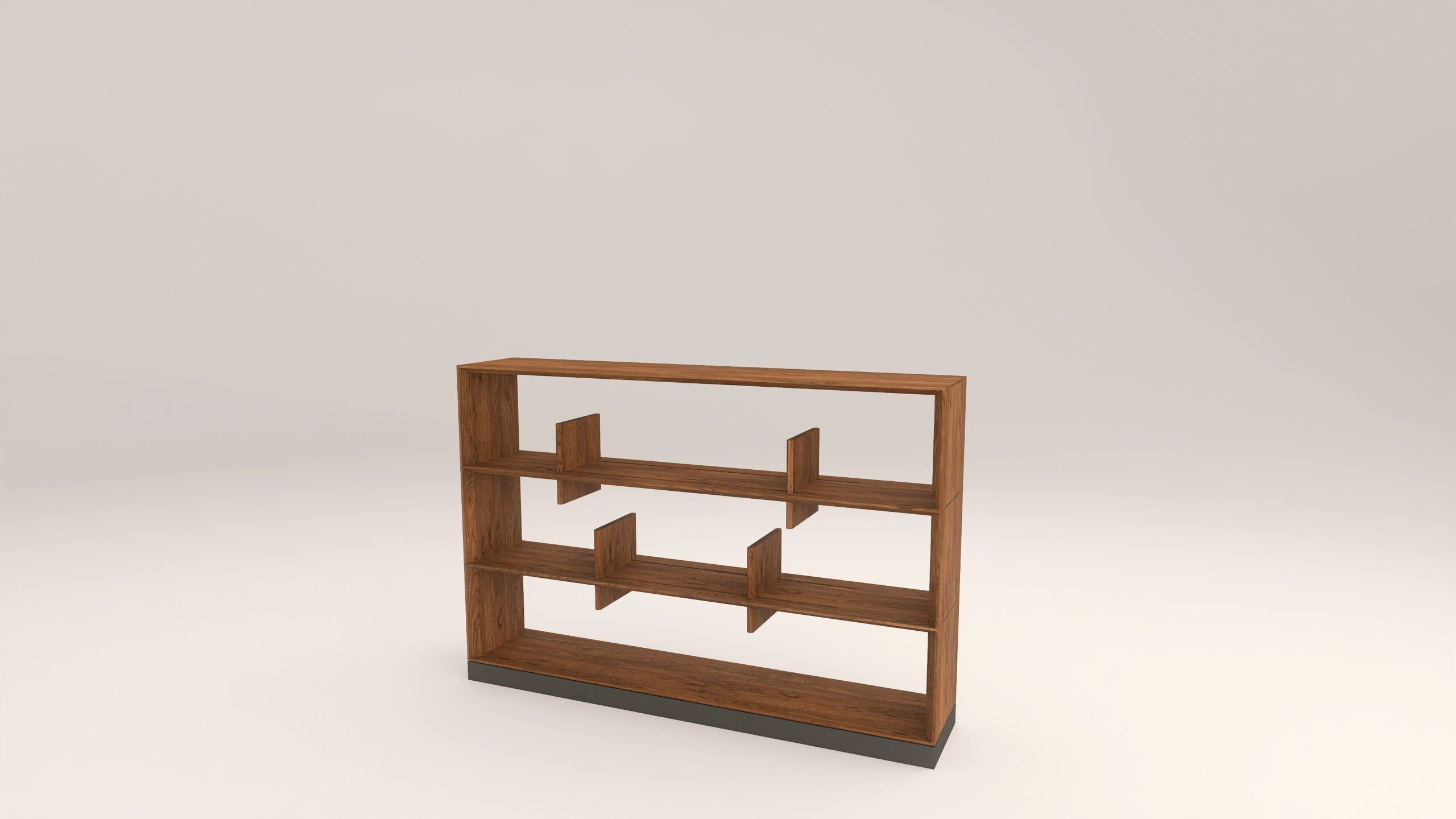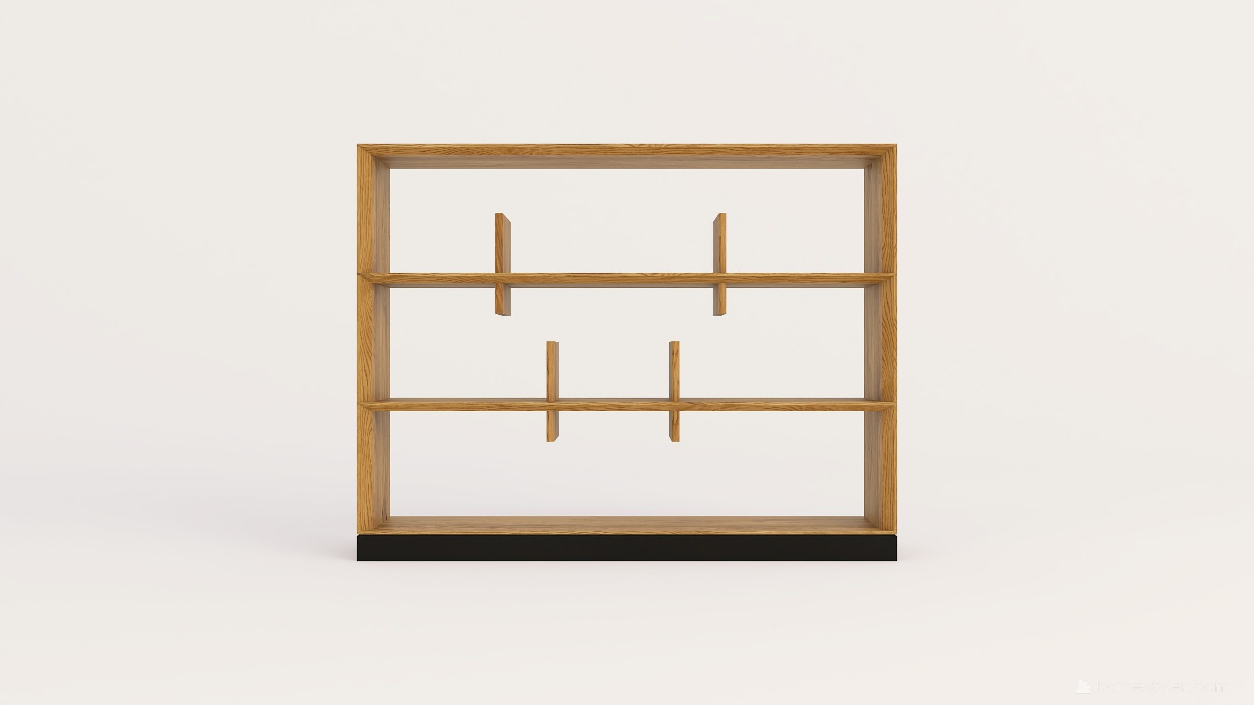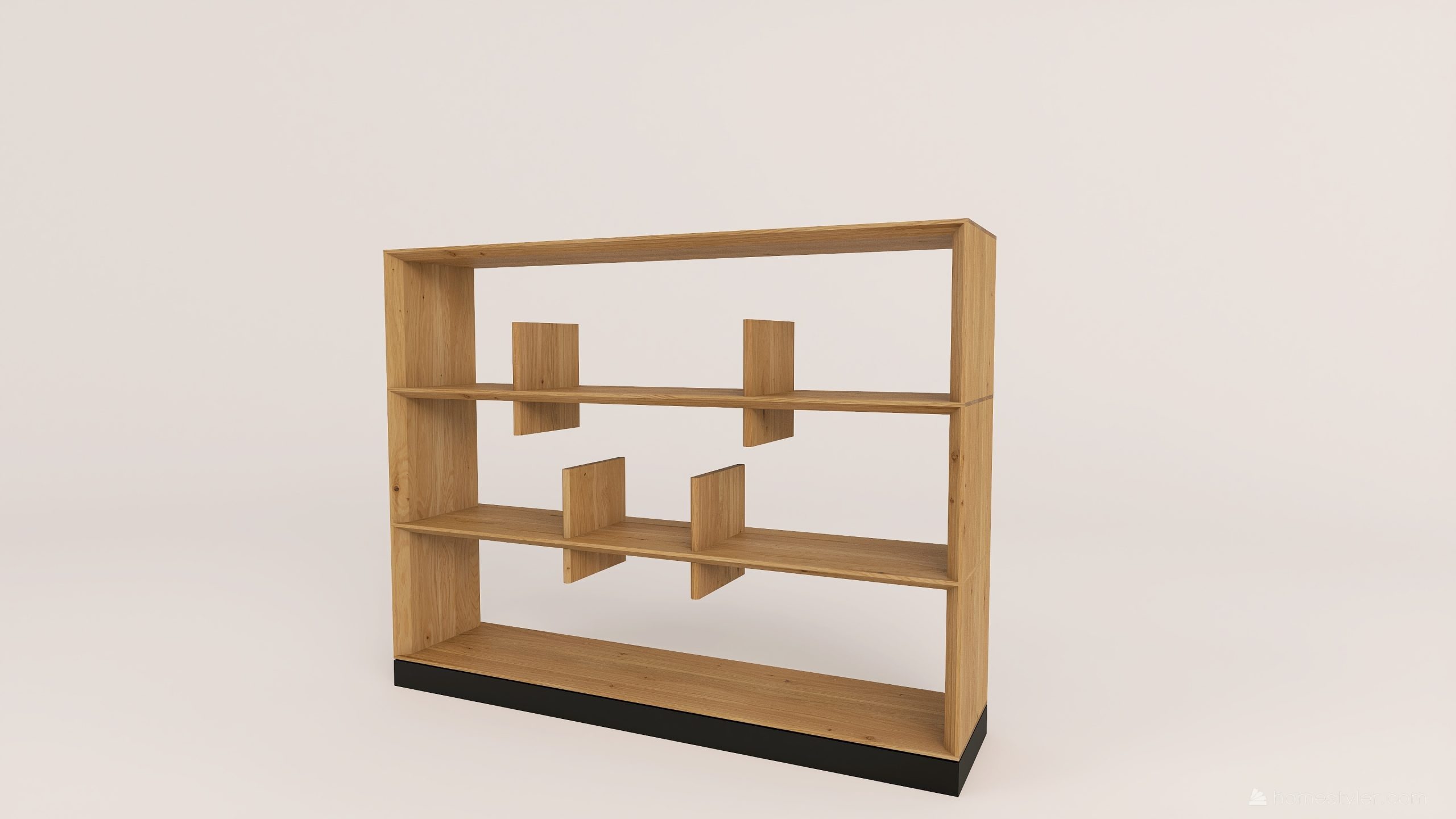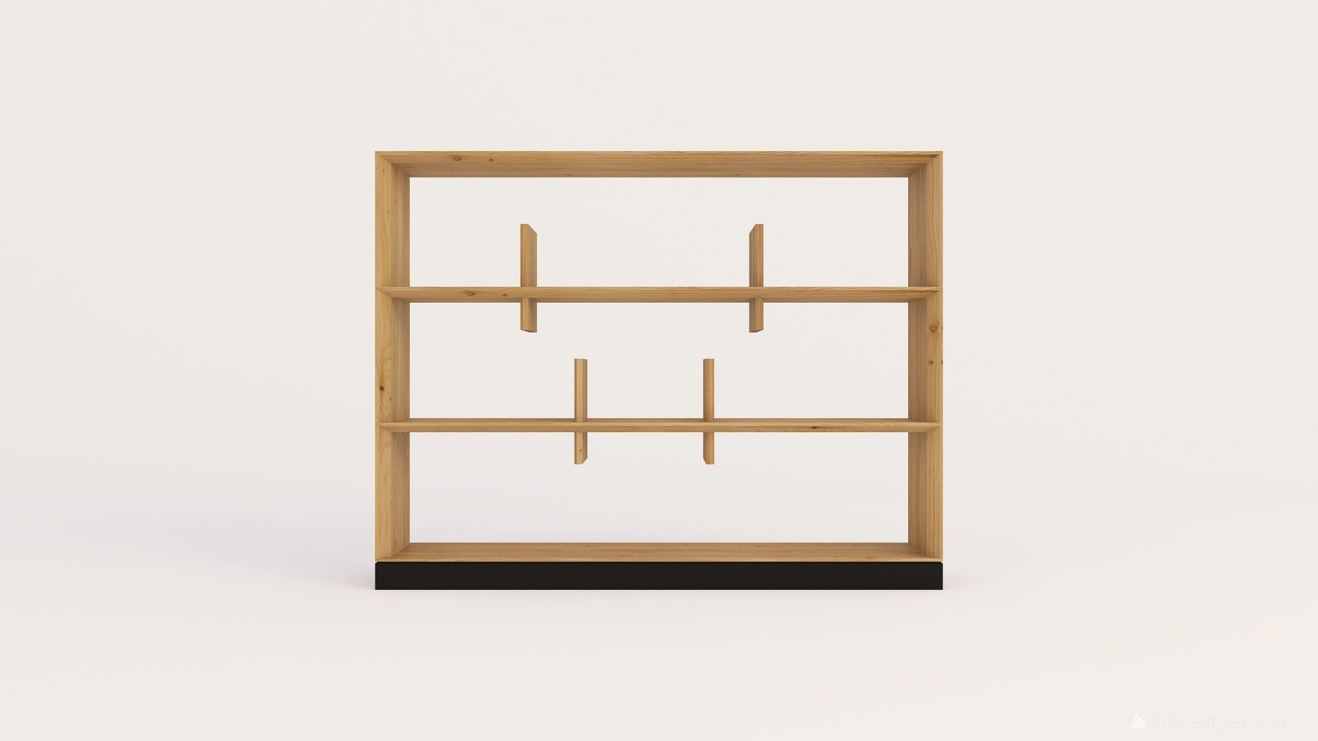 Tömör fából készült, szemből nyitott polcos szekrény két polccal, opcionálisan rendelhető könyvtámasszal. Három féle szélességben rendelhető.