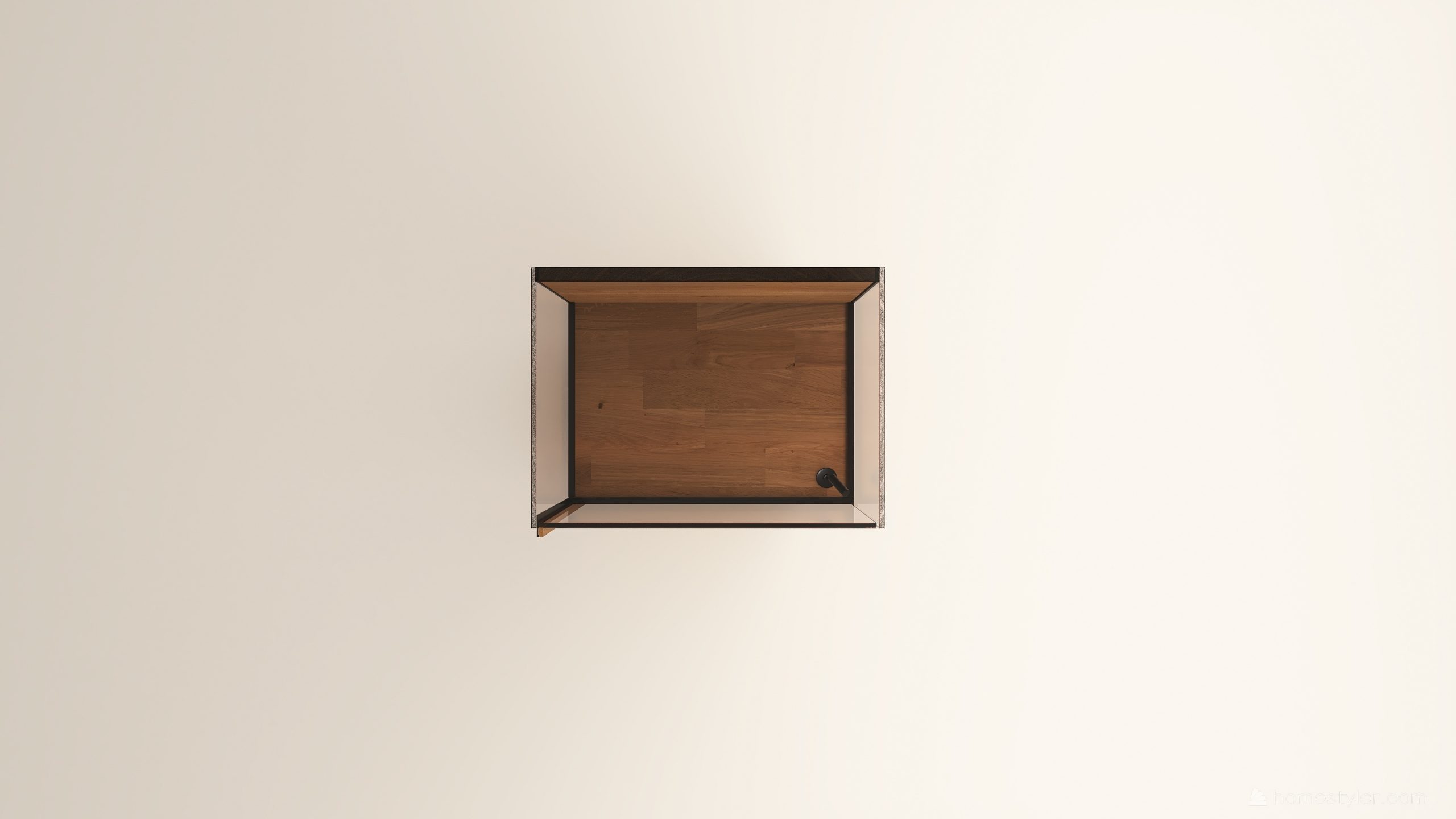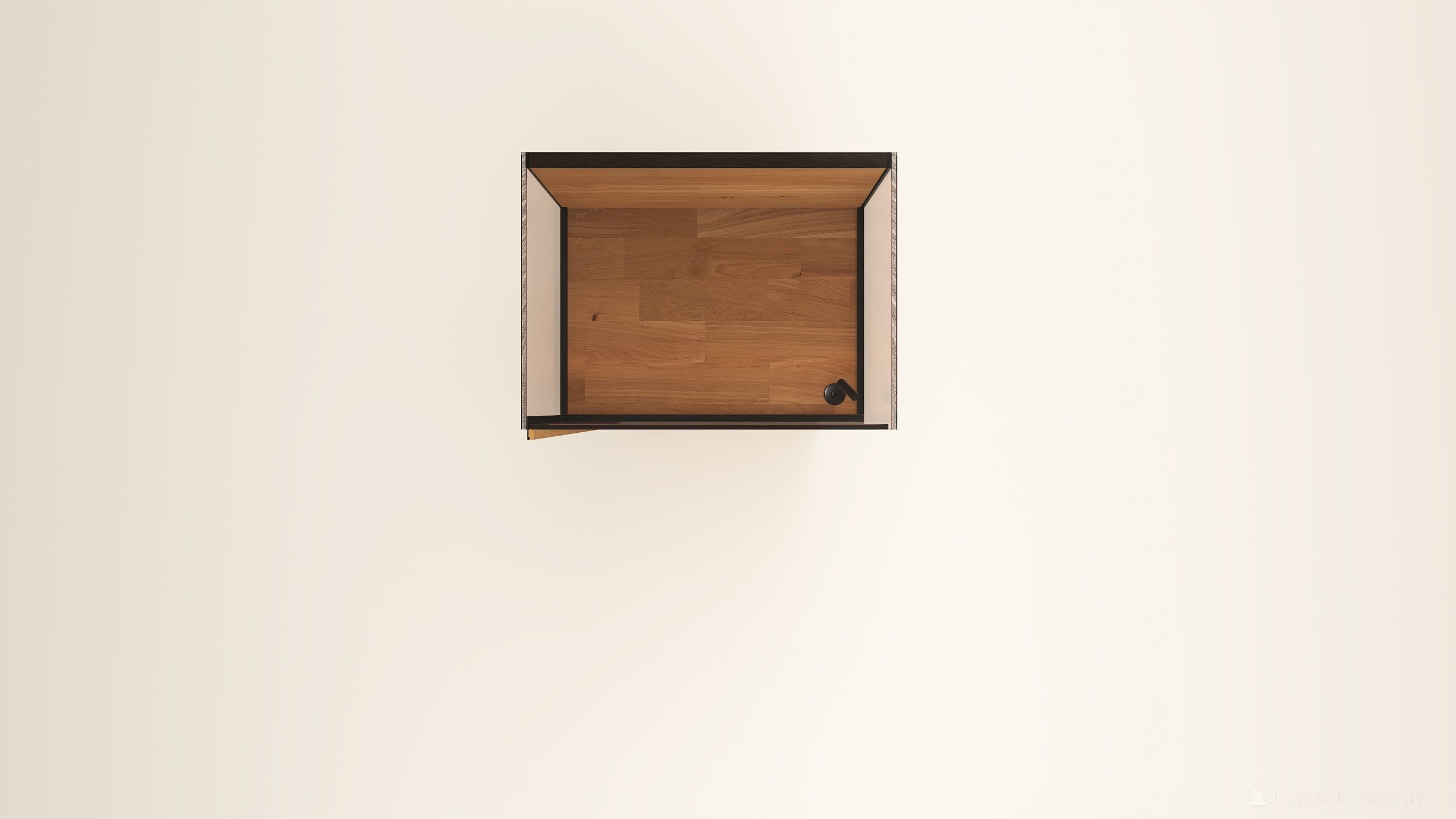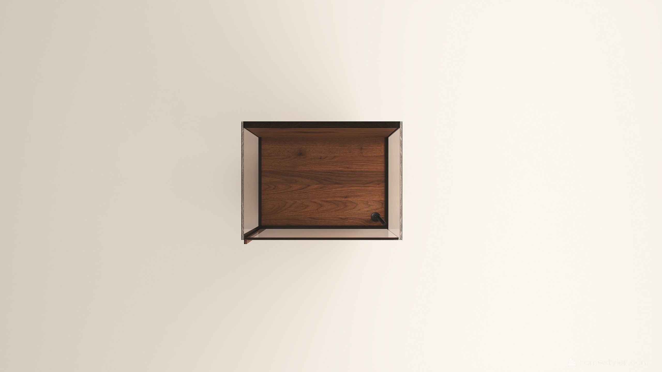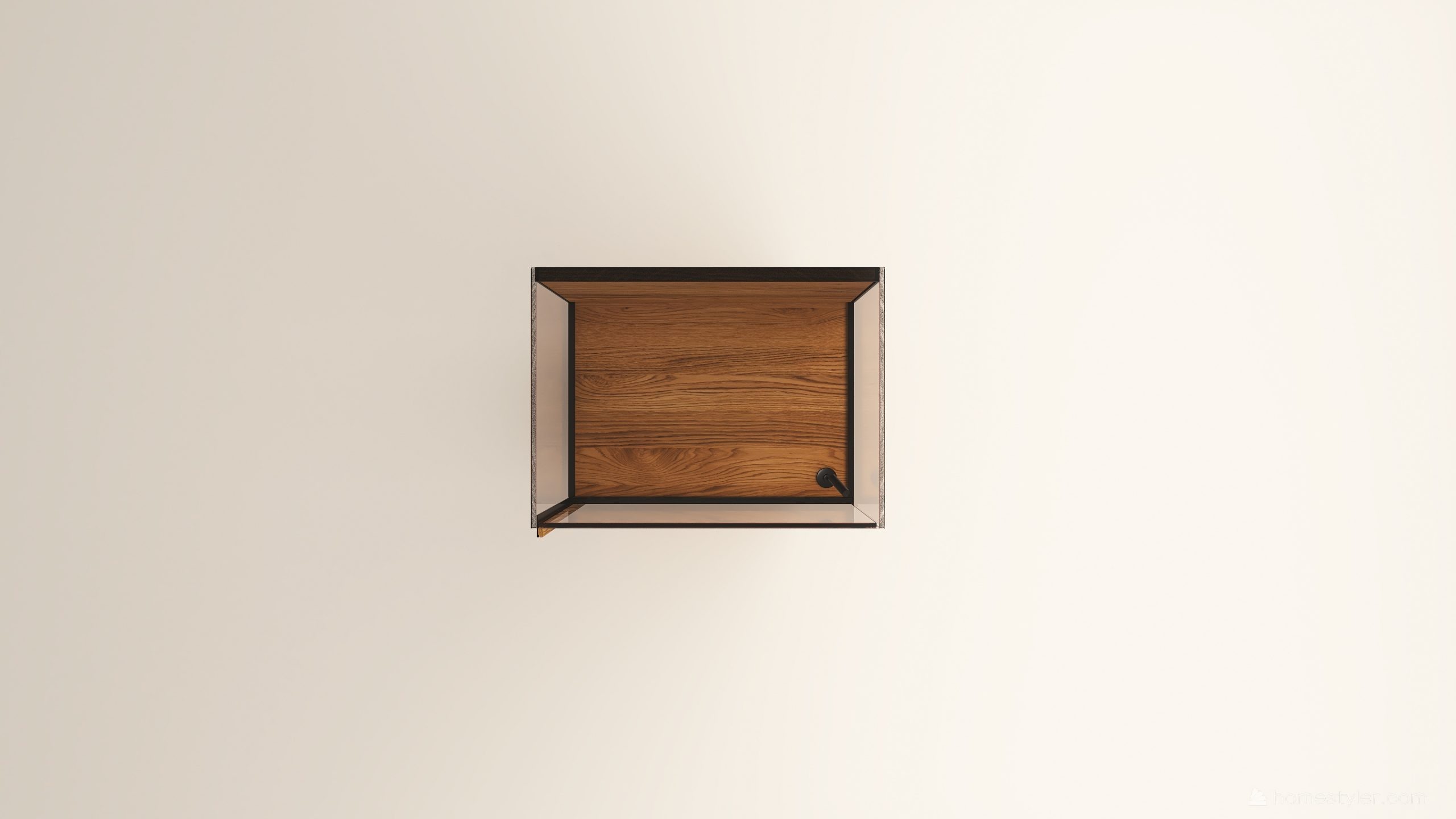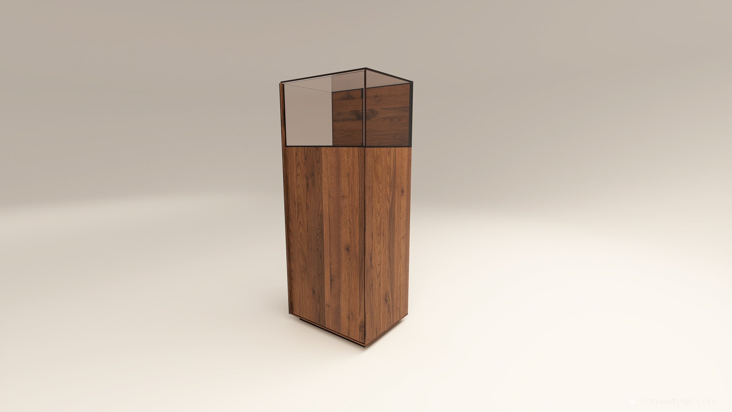 Alacsony tömörfa szekrény, egy üveges ajtóval mögötte két polccal. A hátfal anyaga ( kő, kerámia) és a világítás opcióként választható. A lábazat magassága 40 mm.